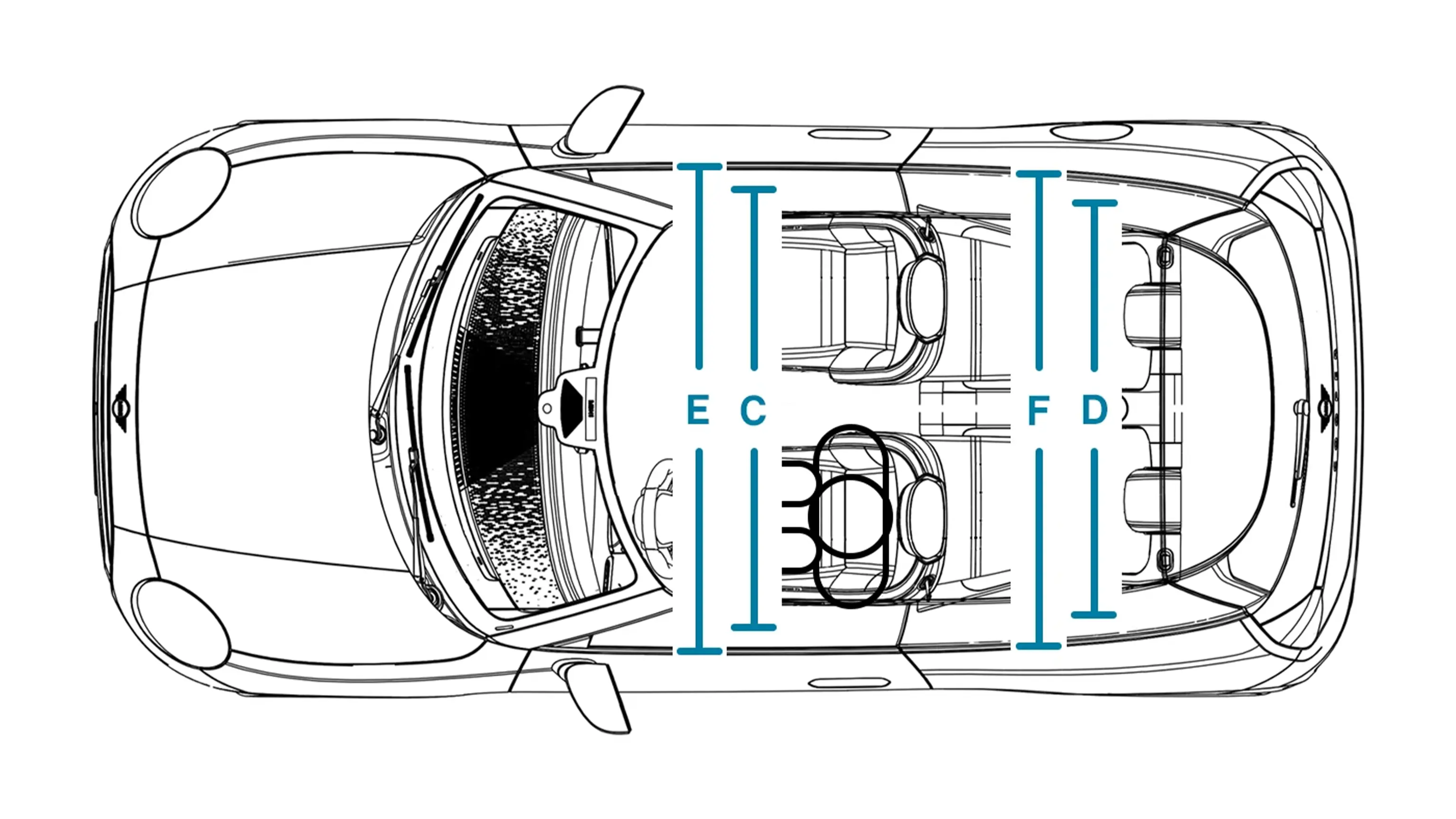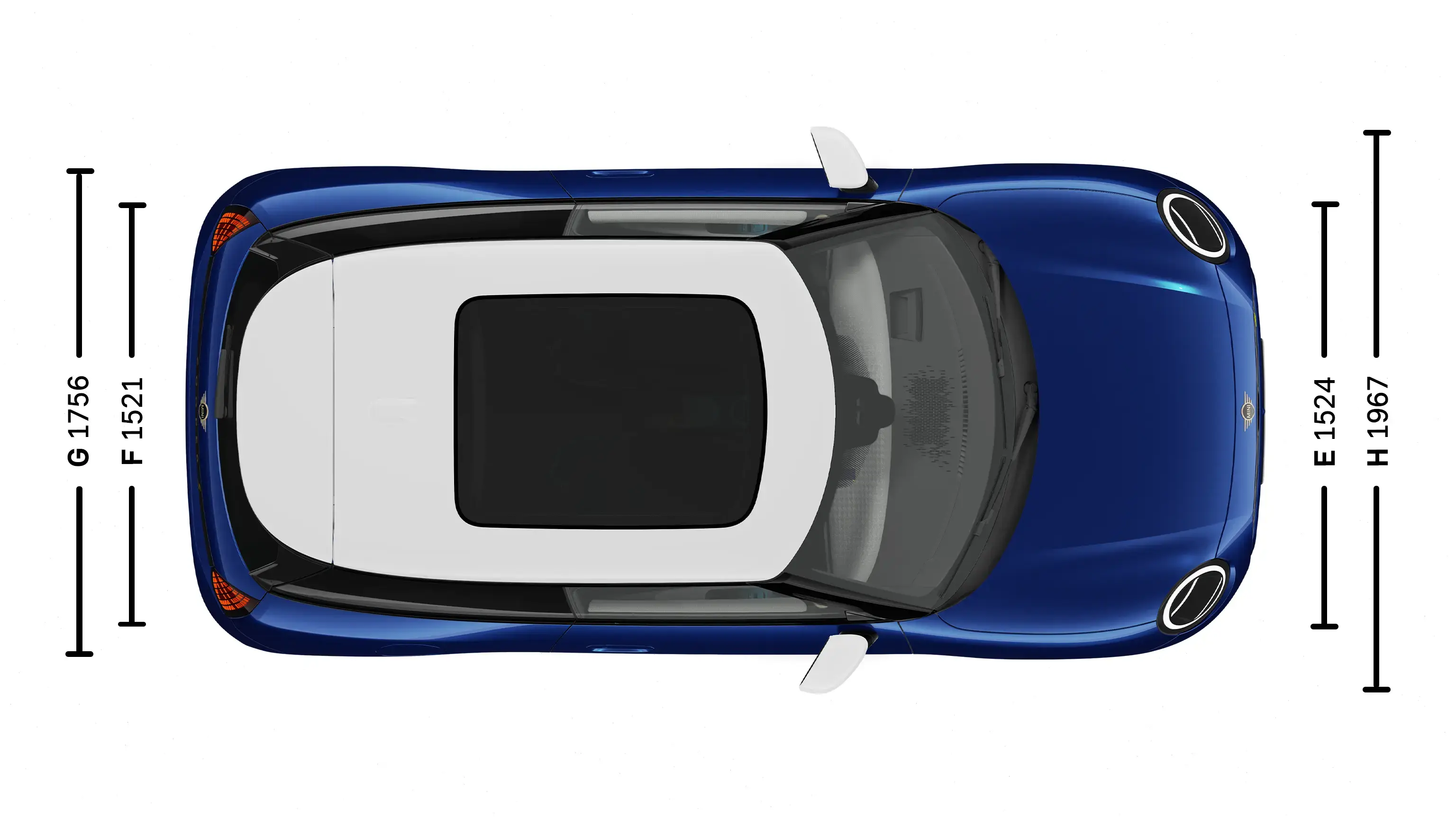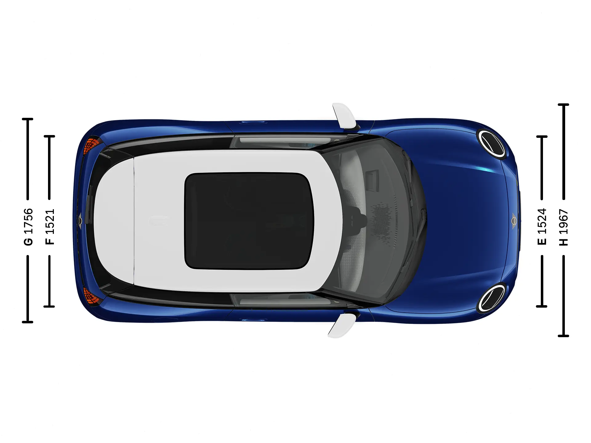 | (H) Pääntila takana, lasinen panoraamakatto | 943 mm |