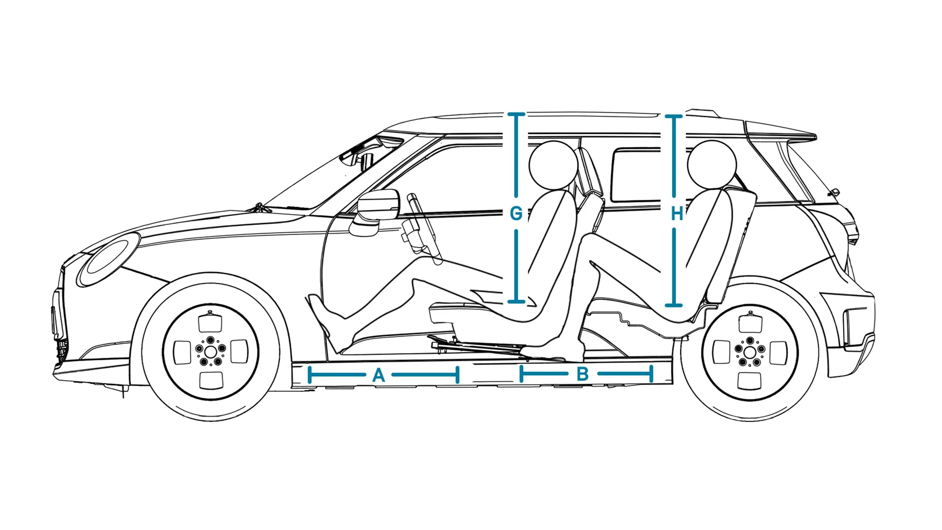 | (G) Pääntila edessä, lasinen panoraamakatto | 991 mm |